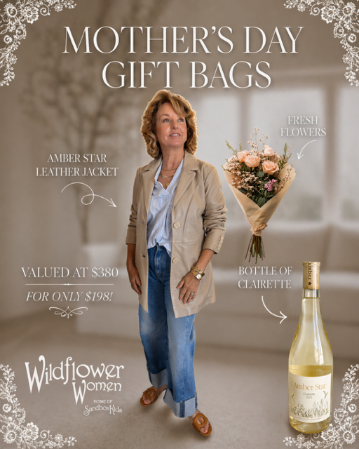 We’ve taken the stress out of Mother’s Day with a gift she’ll never forget—an Amber Star leather jacket, a beautiful bottle of Clairette, and fresh flowers, all wrapped into one perfect package.