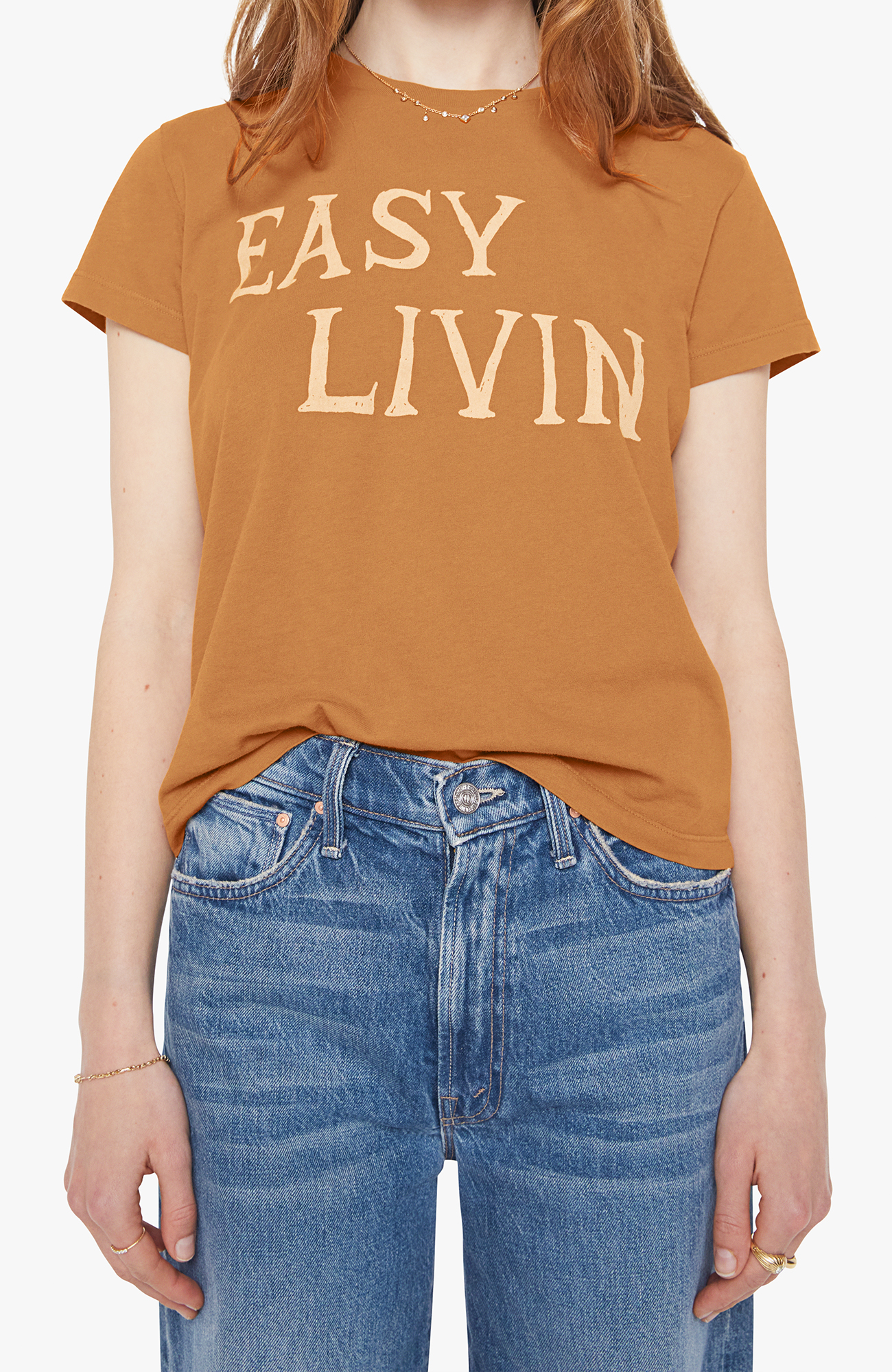Livin’ the dream. A soft crewneck with a slim fit for a vintage look and feel. Made from 100% supima cotton in dark khaki, The Boxy Goodie Goodie in Easy Livin’ features text in cream on the front.
